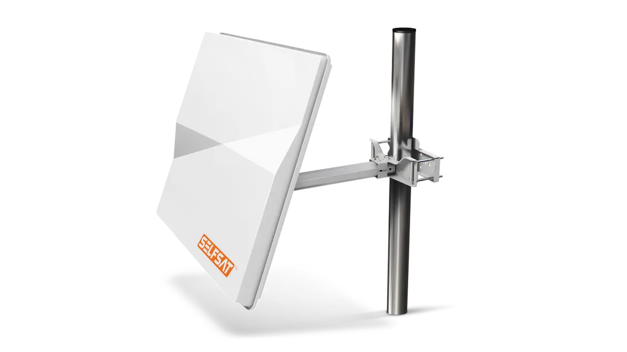 Unlike conventional satellite dishes, the Selfsat H50M is particularly discreet thanks to its rectangular and flat shape. This ensures a more attractive and unobtrusive installation. The included mounting bracket allows the Selfsat H50M to be mounted either on a wall or on a balcony railing.